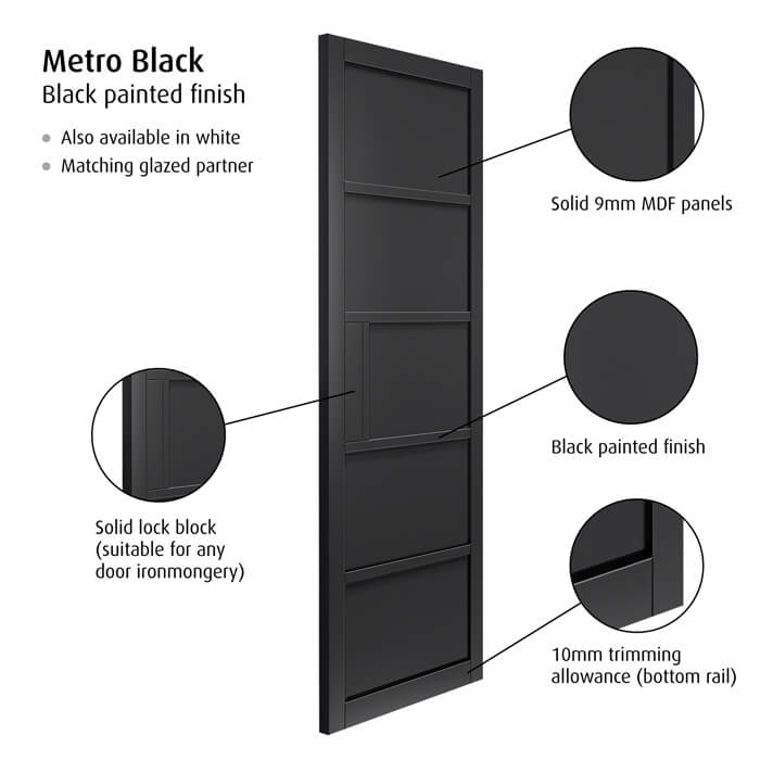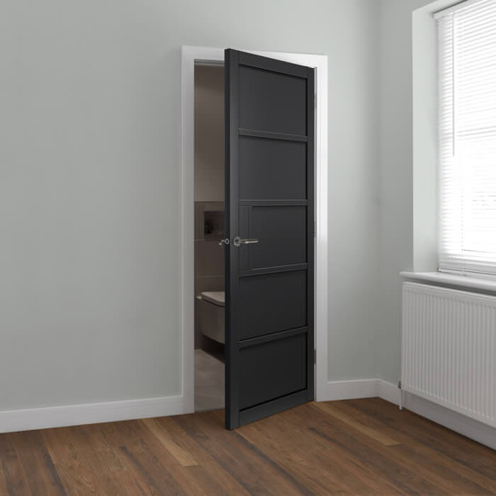 This stylish and fully finished internal door offers effortless installation, ready to enhance any space within your home. Whether seamlessly blending in or making a bold statement with its striking black color, it perfectly complements or contrasts your interior design. With its durable construction and contemporary aesthetics, this door exudes a timeless appeal that elevates any streamlined, elegant, or minimalist interior.