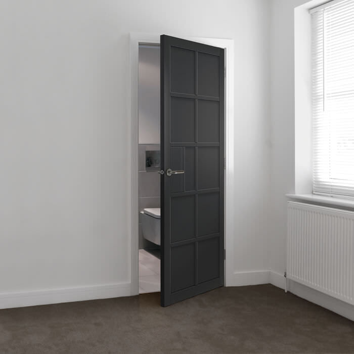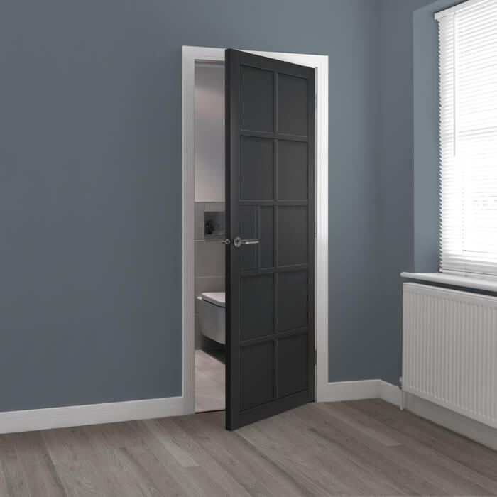 This stylish and fully finished internal door offers effortless installation, ready to enhance any space within your home. Whether seamlessly blending in or making a bold statement with its striking black color, it perfectly complements or contrasts your interior design. With its durable construction and contemporary aesthetics, this door exudes a timeless appeal that elevates any streamlined, elegant, or minimalist interior.