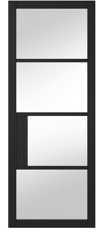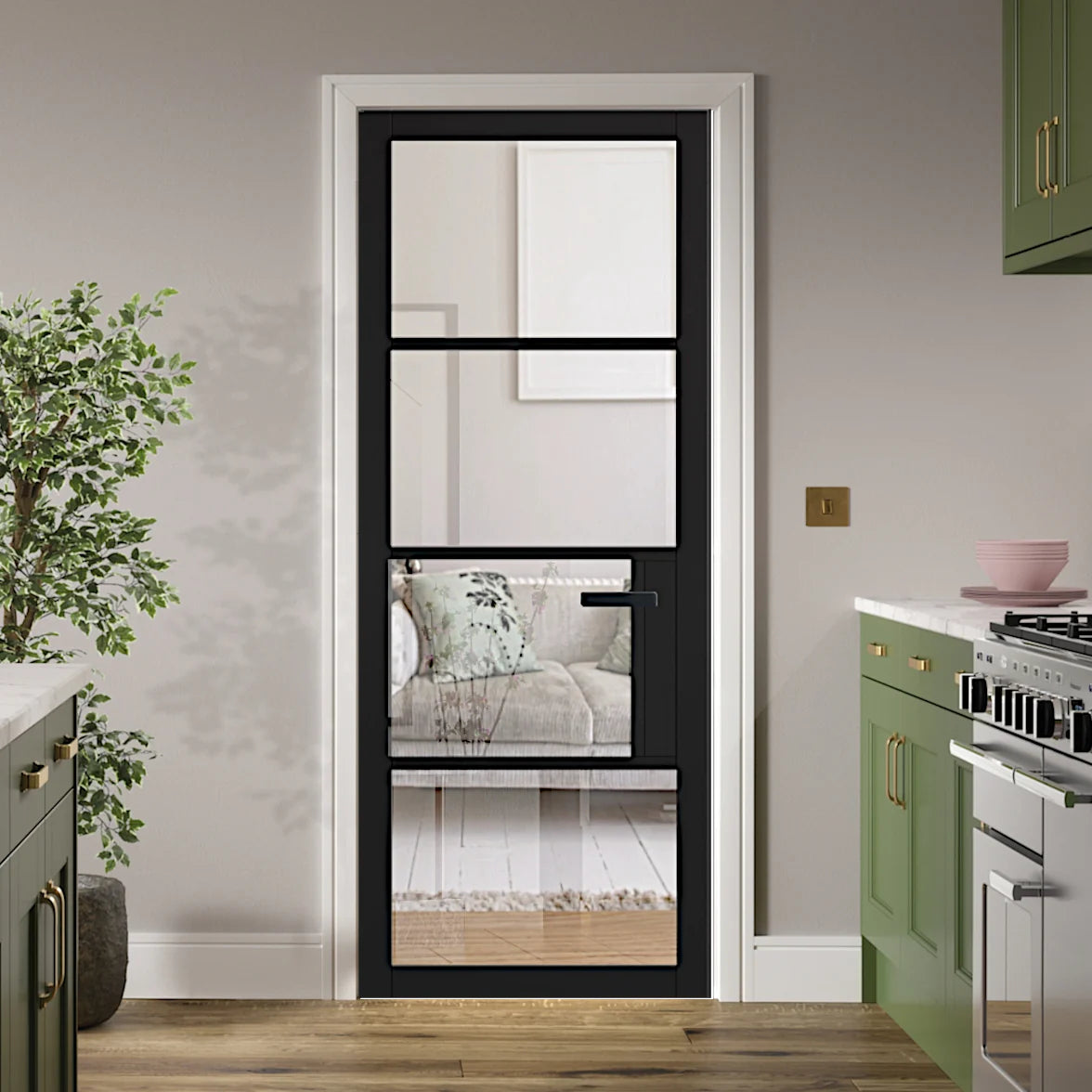 - Style: Industrial Style, Modern Black door featuring four clear glazed panels with decorative beading
