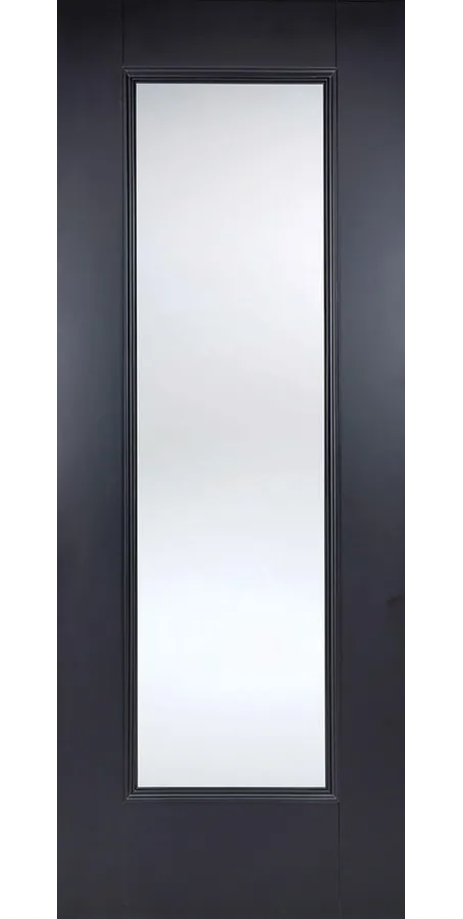 The LPD Eindhoven Glazed Traditional Black Primed Internal Door arrives with a deluxe black primed finish, prepared for painting. An elegant black finish is emphasised by one large, clear bevelled glazed panel which is surrounded by decorative beading.