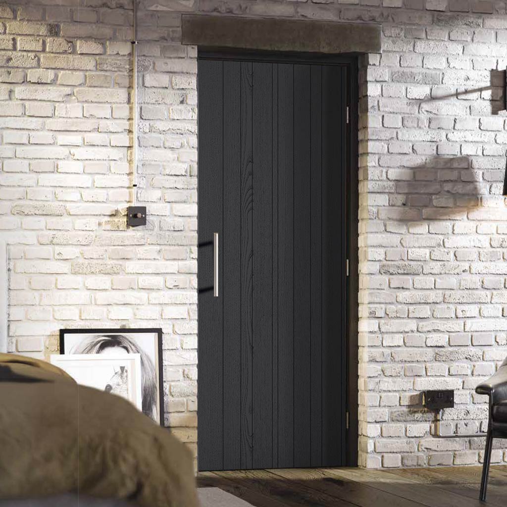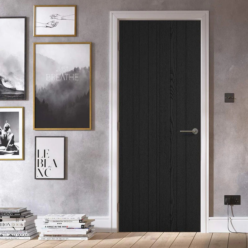The LPD Montreal Black Laminate Internal Door. Featuring a premium laminate finish, this door is prepared for hassle-free installation. Offering reliability and easy maintenance, the internal laminate Montreal presents an excellent option. Its distinctive design, showcasing small vertical V-cut grooves, seamlessly complements modern interiors. In a cool and contemporary Black finish, the Montreal laminate door promises an appealing and uniform array of natural colors.