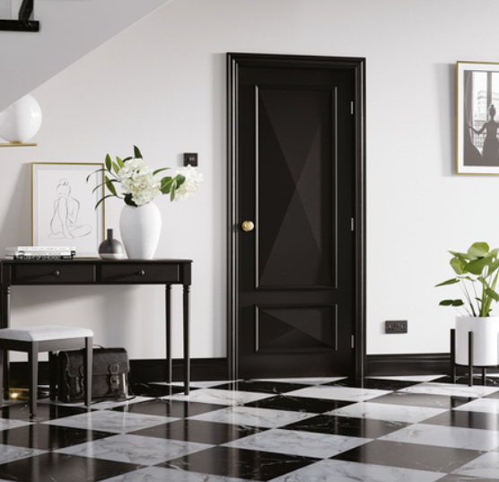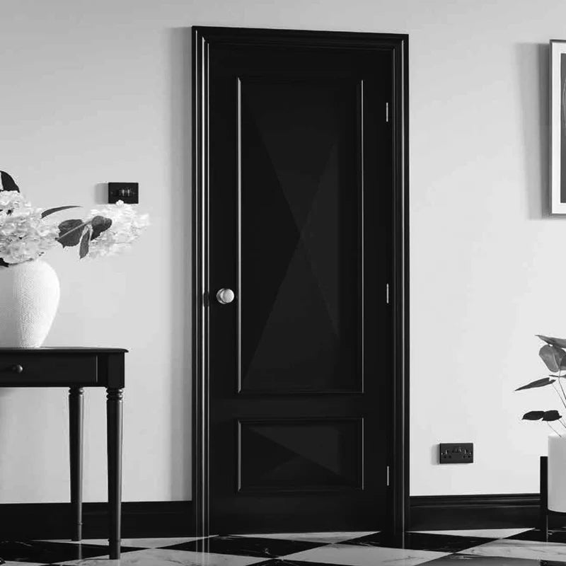 The LPD Knightsbridge Traditional Black Internal Door comes fully finished and ready for installation, making it an outstanding option for homes with a classic ambiance. It embodies traditional elegance at its peak. Additionally, the LPD Knightsbridge boasts a distinctive 'cricket bat' moulding detail, ensuring an abundance of refined, stately style.