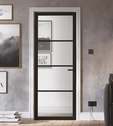 LPD Soho Black Clear Glazed Industrial Style Door - Pre Finished