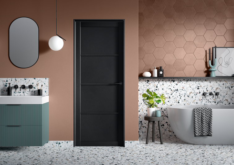 The LPD Soho Black Industrial Style Internal Door brings an industrial-inspired look with its sleek, understated four-panel design and luxurious pre-finished black surface. Perfect for creating cool, contemporary interiors, this door adds a refined edge to any space. For installation, pair the Soho door with LPD Manhattan door hardware.