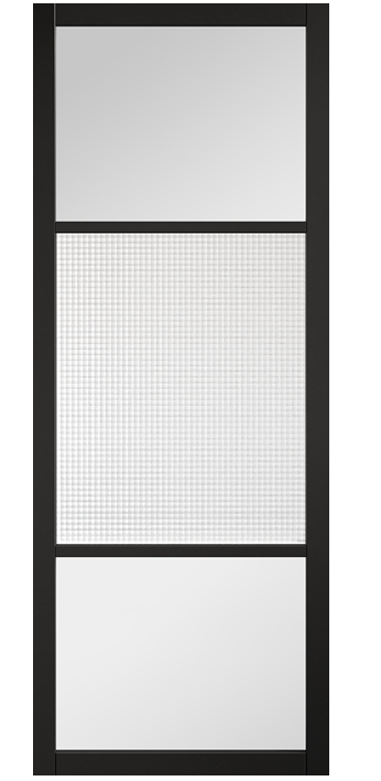- Glazing: 2 x Clear safety glazed panels (top & bottom) & 1 x Centre Cross Reeded toughened safety glass