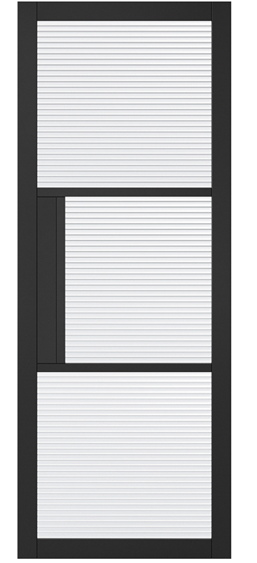 - Style: Industrial Black door featuring three reeded, safety glass panels