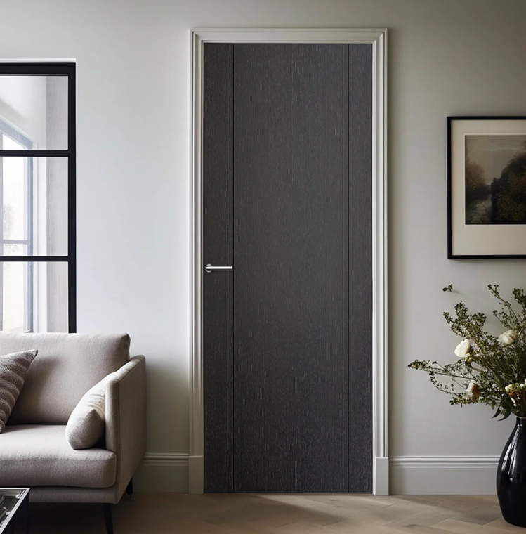 The LPD Vancouver Black Ash Laminate Internal Door in Pre-finished Black. LPD's ever popular Vancouver design, featured in black ash laminate takes this modern door to the next level. Using quality laminate in the doors construction creates a seamlessly consistent finish to our product.