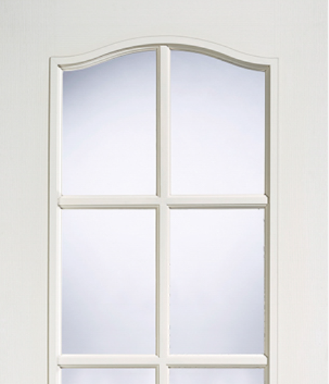 - Style: Classical door featuring 6 clear glazed panels feature decorative bars and a curved top edge