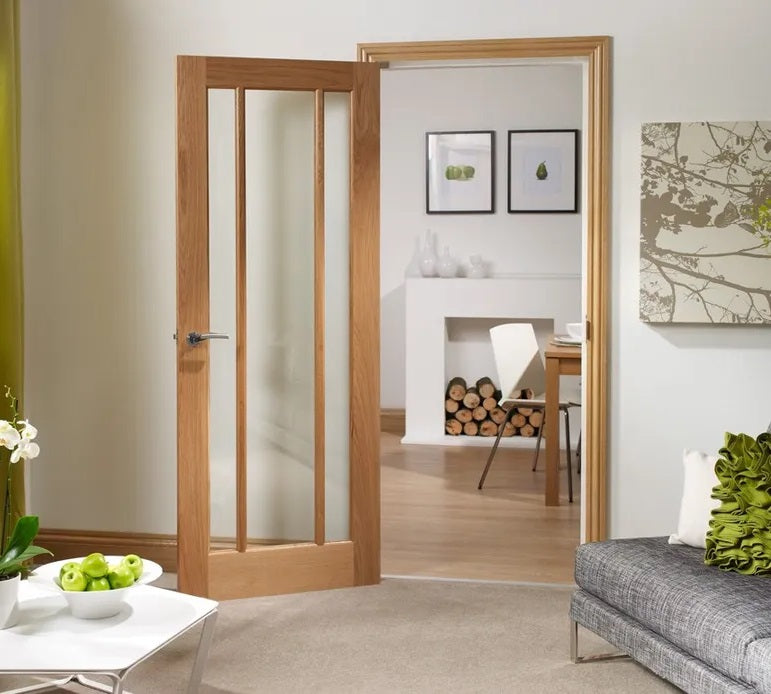 - Style: Traditional Oak Veneer Door with 3 Clear Glass Panels