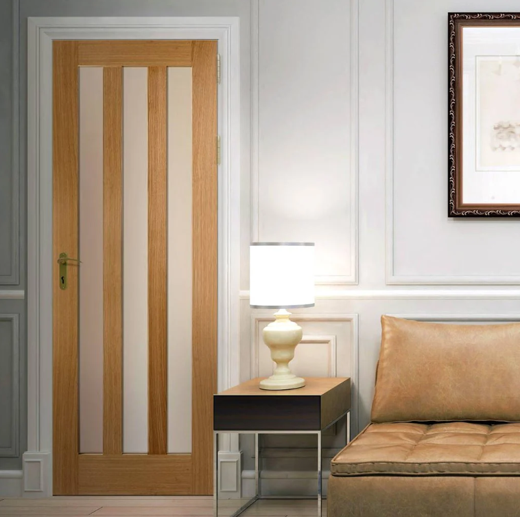 - Style: Unfinished Oak Internal door with 3 parallel Frosted glass panels
