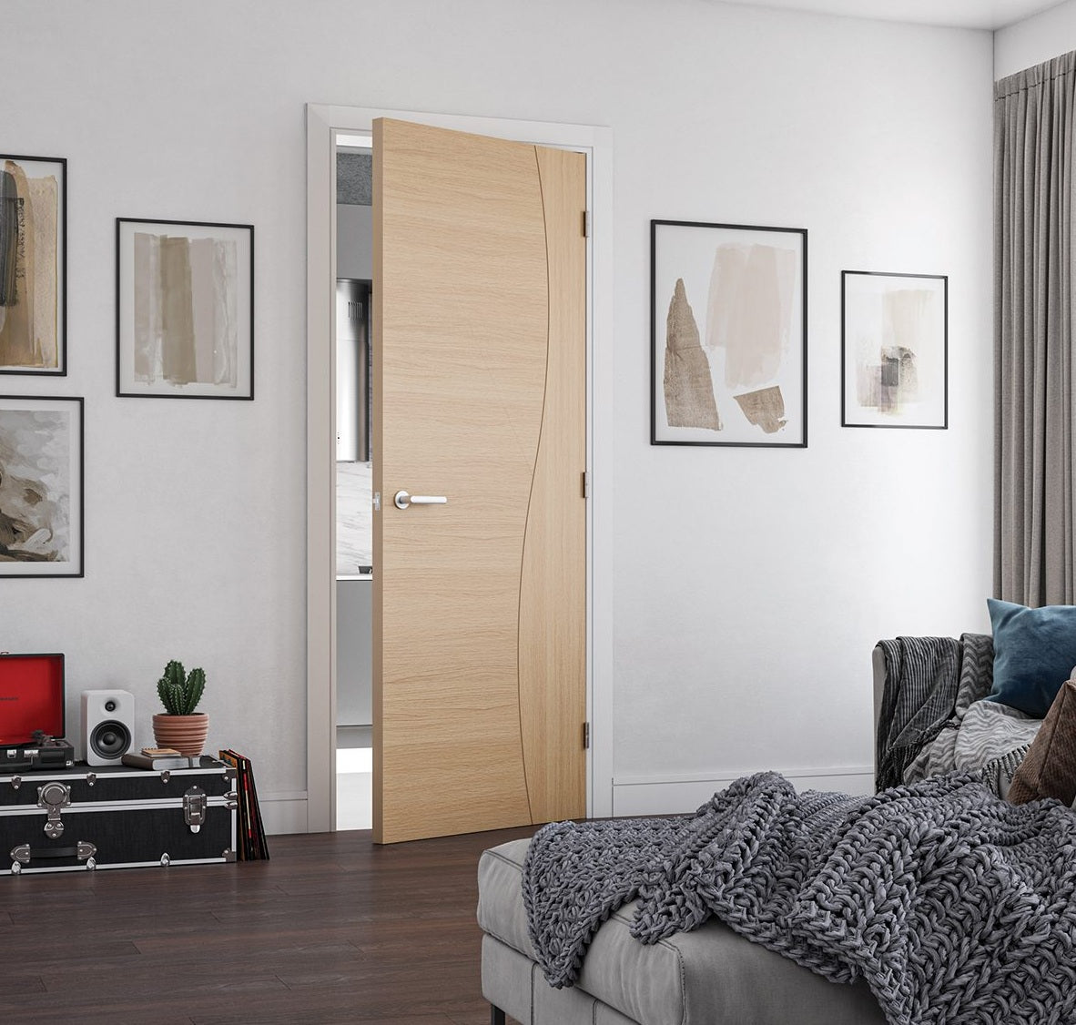 The Deanta Cadiz Oak Internal Door arrives Pre Finished. A fire-rated version of the classic Cadiz door, certified for safety and built for style, offering 30-minute fire protection without compromising on elegance. The Deanta Cadiz FD30 oak fire door blends timeless design with certified fire safety. Featuring a natural oak veneer and a striking grain pattern, it’s prefinished and ready to install. Independently tested to FD30 standards, it is Q-Mark and Certifire approved, making it ideal for both commercial and residential interiors that demand high performance and premium aesthetics.
