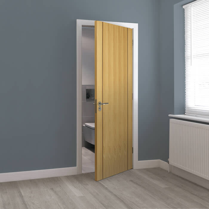 Fully finished in quality varnish, with a Semi-solid core construction, the Chartwell Oak Veneer Internal door with Semi-solid core is bursting with appeal. The modern Oak veneer finish will enhance any house, flat or apartment, filling your home with natural appeal thanks to the attractive wood grain pattern details.
