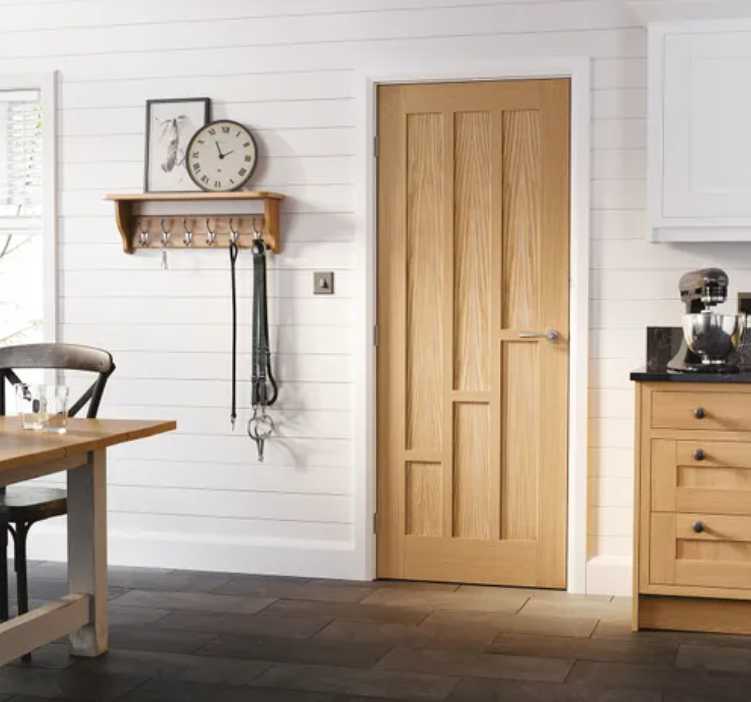 - Style: 6 asymmetrical panelled door in real oak veneer