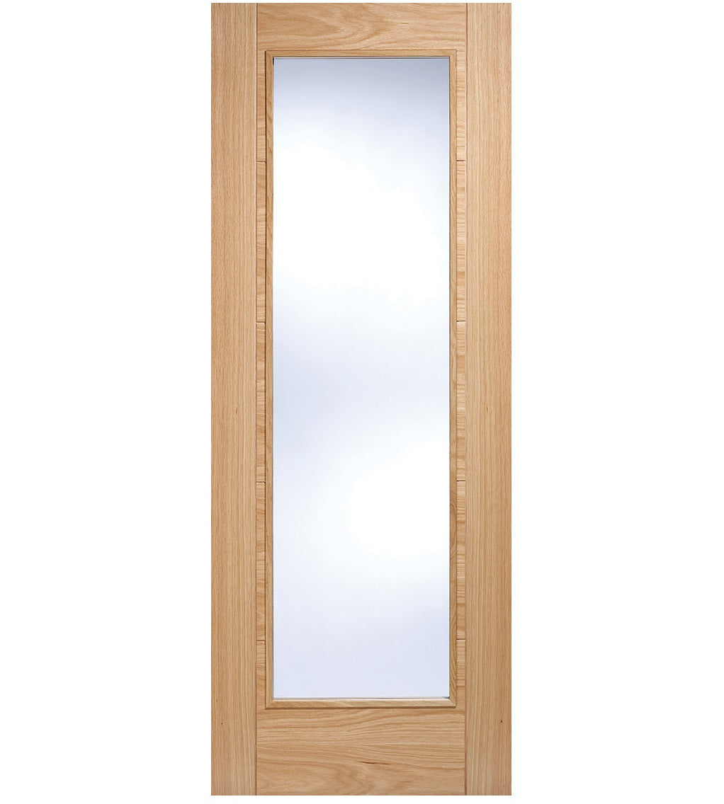 The LPD Vancouver Glazed Pattern 10 Internal Door is coveted for its capacity to infuse natural light into contemporary interiors. This Vancouver 10 variant boasts an Oak wood grain, raised molding on both sides, and a generously sized clear glazed center panel. Supplied fully finished and ready to hang, this FD30 fire door provides a minimum of 30 minutes of fire resistance, effectively limiting the spread of flames within your property in the event of a fire. Its solid core construction also ensures exceptional durability and insulation.