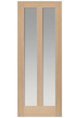 The JB Kind Matterhorn Real Oak 2 Light Glazed Internal Door epitomizes modern shaker-style design, featuring genuine oak and two vertical glass panels to illuminate any space. Delivered unfinished and ready fora stained or varnish application, this sleek and contemporary door is an ideal fit for minimalistic houses, flats, or apartments.