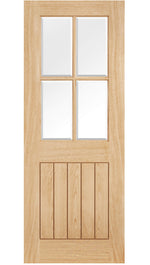 - Style: Classic panel design in pre finished oak veneer and clear safety glass panels