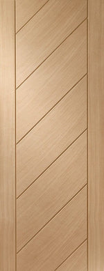 The XL Joinery Monza Decorative Internal Oak Door features a cutting-edge design with diagonal panels and deep U-grooves that add striking depth and texture. Two vertical grooves enhance the design by creating an illusion of height, drawing the eye upward for a spacious feel. Perfect for apartments or modern homes, the Monza's contemporary style adds sophistication to any interior. Matching glazed and fire door options are available, allowing you to achieve a consistent and cohesive look throughout your home.