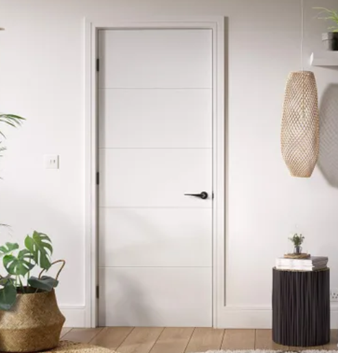 The LPD Santandor White Primed FD30 Fire Door arrives white primed and ready for painting. The modern Santandor features five panels in a ladder style design. With a white primed finish, this door is ready for a final top coat. This is a versatile option for you and the panelled design helps to form a sophisticated, sleek look.