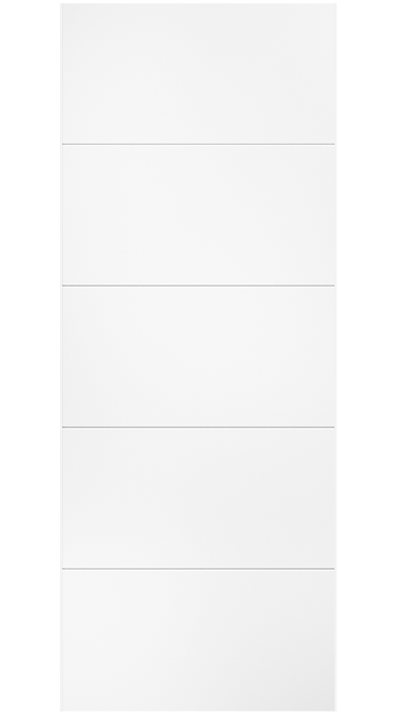 - Style: Modern door featuring five panels in a ladder style design