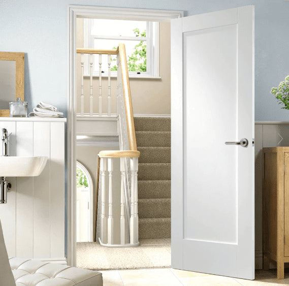 - Style: Shaker Style White Primed door with 1 recessed panel