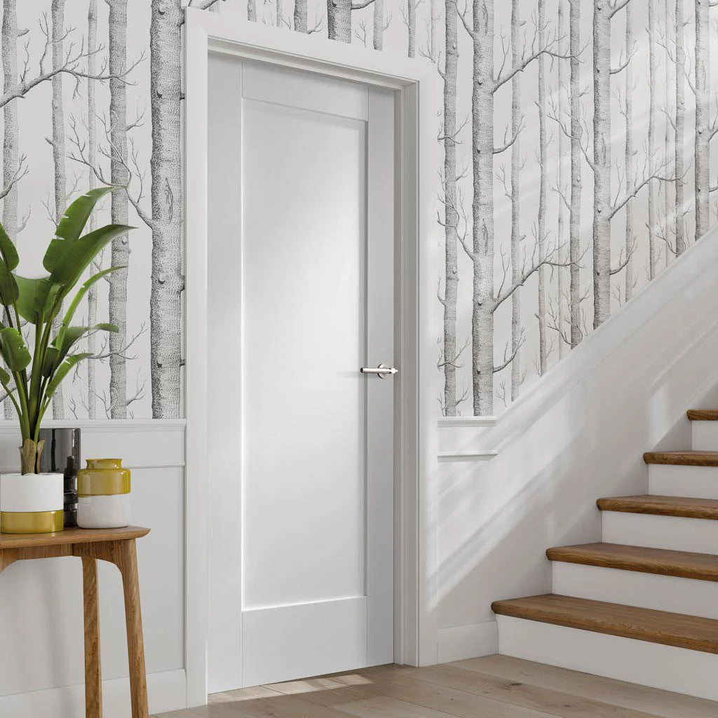 The LPD Shaker Style Pattern 10 White FD30 Fire Door provides adaptability with its pristine white primed coating, effortlessly complementing diverse interior aesthetics and ready for your unique embellishments. Featuring a recessed panel, this internal door presents a versatile appearance that is both straightforward and impactful. Its fresh, crisp white primer awaits the application of a final top coat.