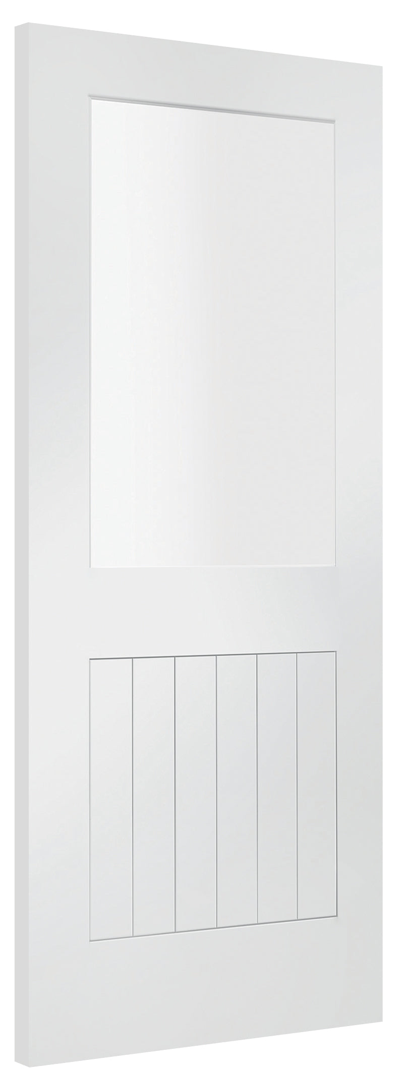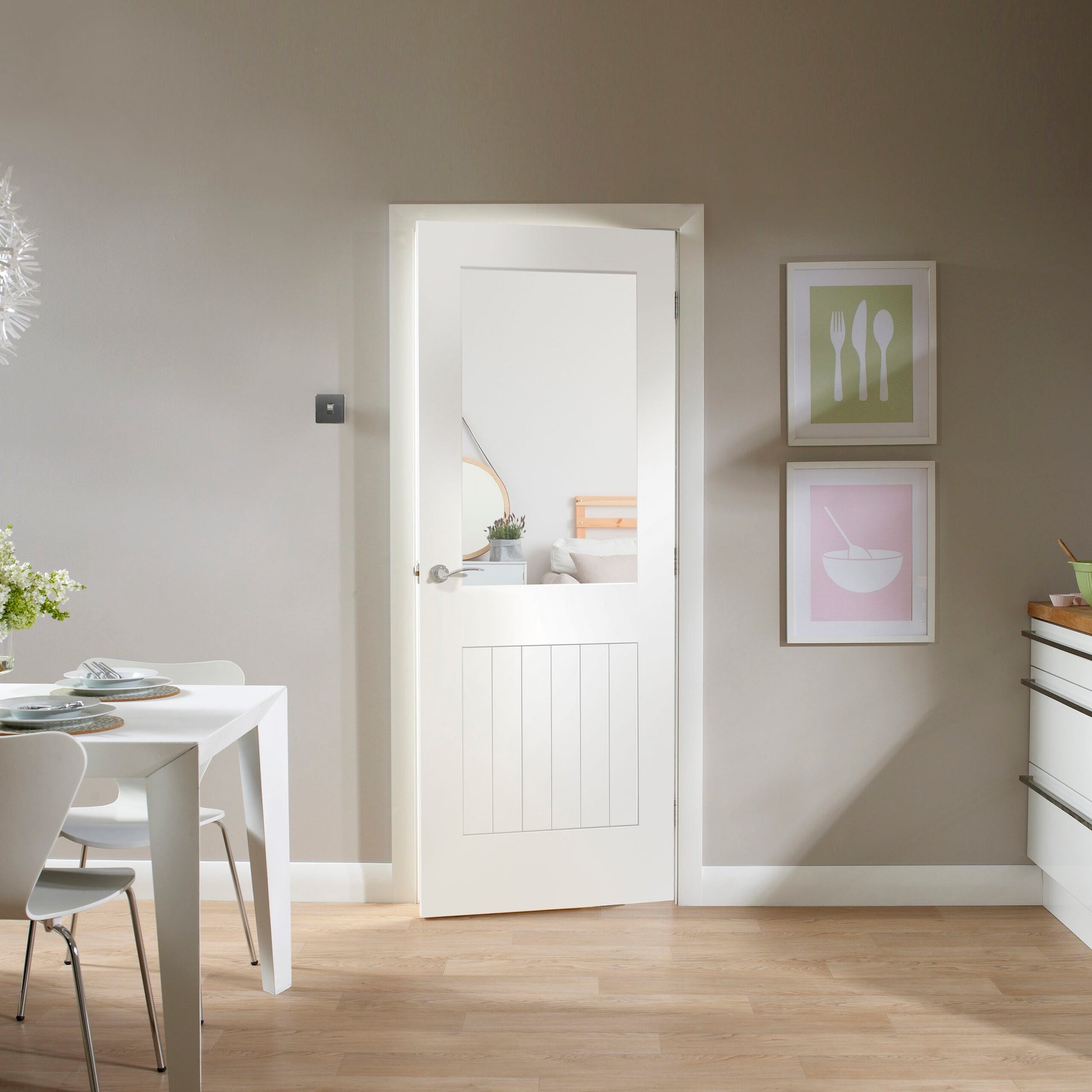 The XL Joinery Suffolk Clear Glazed Half Light White Primed Internal FD30 Fire Door combines a timeless 6-slat boarded design with a sizable glass panel, resulting in a door that is both visually striking and highly functional. The generous top glazed panel is perfect for spaces where natural light is limited, as it effortlessly lets light flow between rooms. Additionally, a wide selection is available, including panelled and fire-rated doors.