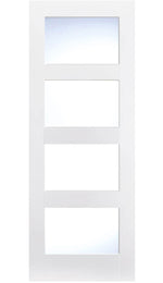 The LPD Shaker Glazed White Primed 4L Internal Door provides flexibility with its white primed surface. Its straightforward and tidy design showcases four equally sized, clear glazed panels, ideal for enabling light to flow between living spaces.