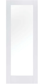 - Style: Shaker Style White Primed door with 1 clear glass panel