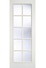 The LPD Textured SA 10 Light Glazed White Primed Internal Door comes white primed and can be painted to meet your colour scheme. Ten clear glazed panels are framed by a white composite with raised moulding on both sides of this practical door design. FSC Certified, this door is manufactured using environmentally friendly timber.