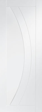 The XL Joinery Salerno White Primed Internal Door features a unique and stylish design. Its dual-lined curved pattern creates a striking visual effect, perfect for enhancing any home interior. Deep U-grooves add texture and depth to the design, offering a sophisticated finish. This range also includes a matching clear-glazed door for a cohesive look.