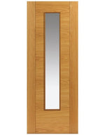 JB Kind Emral Pre-Finished Oak 5 Panel and 1 Light Internal Glazed FD30 Fire Door. Real oak veneered internal door with five ladder style panels with real wood grooves. Clear flat safety glass with raised beading.