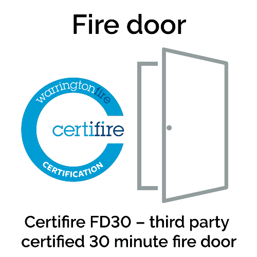 - Door Type: Certifire Glazed FD30 (30 minute) Fire Door with Solid core
