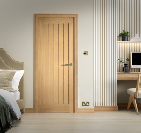 - Style: Classic panel design in pre-finished oak veneer