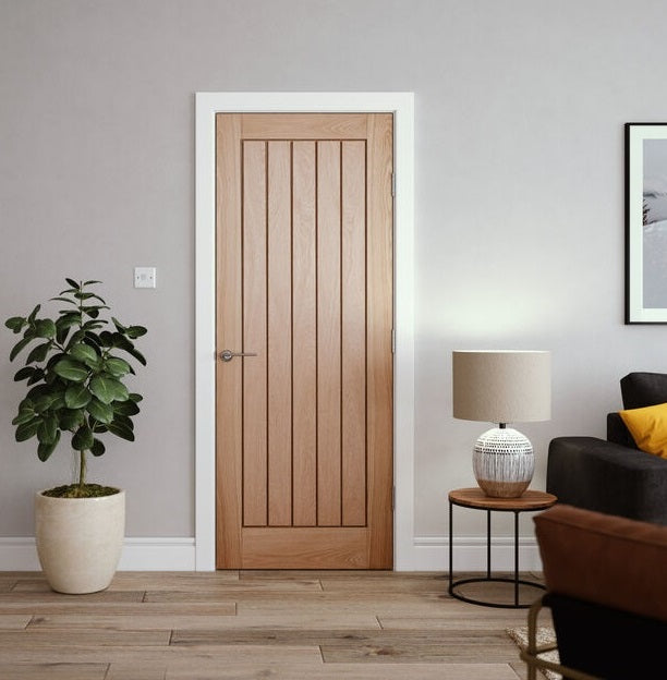 Finished with precision, using American White Oak veneers, the LPD Mexicano Oak Internal Door adds a warm and distinctive charm to your home. Its prefinished design holds broad appeal, seamlessly blending into both modern and traditional settings. The door's superb flat square groove layout, along with a colour-matched veneer pattern for the stiles and rails, enhances its visual appeal.