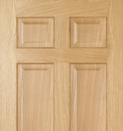 - Style: Traditional 6 Panel Oak Veneer Door, Four raised rectangular panels sit below two raised square panels