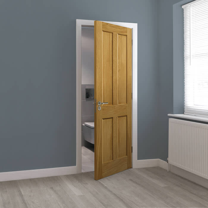 The JB Kind 4 Panel Derwent Unfinished Real Oak Internal Door presents a timeless panelled design crafted with a genuine oak veneer. Delivered unfinished and ready for a stain or varnish finish, the Derwent features four flat panels made from quarter sawn oak, adding classic elegance to any traditional home or period-style property.