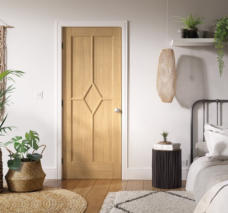 The pre-finished LPD Reims 5 Panel Oak FD30 Fire Door boasts a classic design highlighted by panel accents. A new take on the LPD traditional Reims internal door but this time in pre-finished oak. Featuring a unique diamond design which is formed using decorative beading makes this door a recognisable piece. This, combined with the sophisticated oak finish allows the door to appear traditional yet classy.