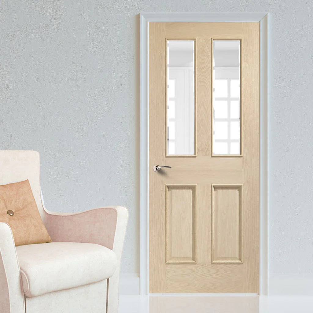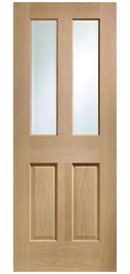 The XL Joinery Malton Clear Bevelled Glazed Oak FD30 Fire Door features a timeless twinlight design with sophisticated clear bevelled glass. The raised and fielded panels on the lower section perfectly complement the glass, creating an elegant and refined aesthetic that suits any home. This stunning range is completed with matching panelled and fire door options for a seamless and stylish look throughout your property.