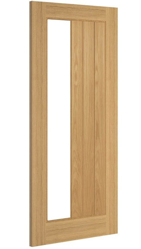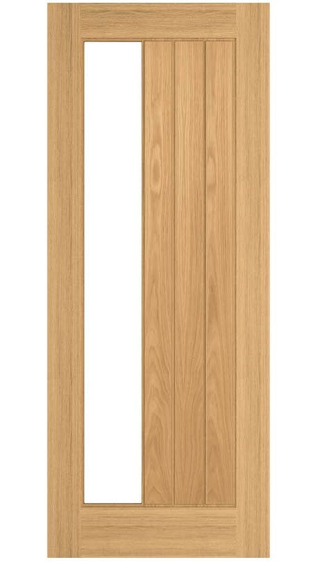 The Deanta Ely Prefinished Oak 1SL Glass Internal Door is a refined and contemporary choice for enhancing interior spaces with natural light and a touch of sophistication. Crafted from high-quality crown cut American white oak veneer, this door features a single clear glass panel, allowing light to flow between rooms while maintaining privacy. The solid core construction ensures durability and a premium feel, while the prefinished surface eliminates the need for additional finishing work. The door offers flexibility for adjustments to fit various openings. It is FSC® certified, ensuring responsible sourcing, and comes with a 10-year manufacturer's guarantee.