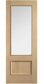 - Style: 2 Panel, 1 Light Clear Safety Glass Panel emphasised by raised bolection mouldings