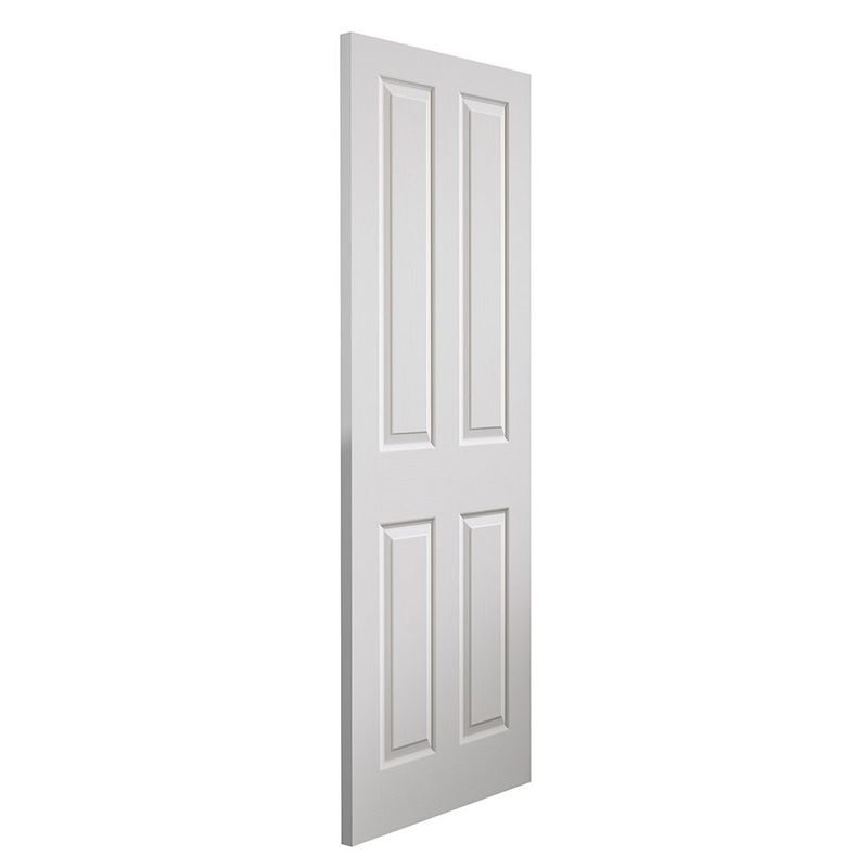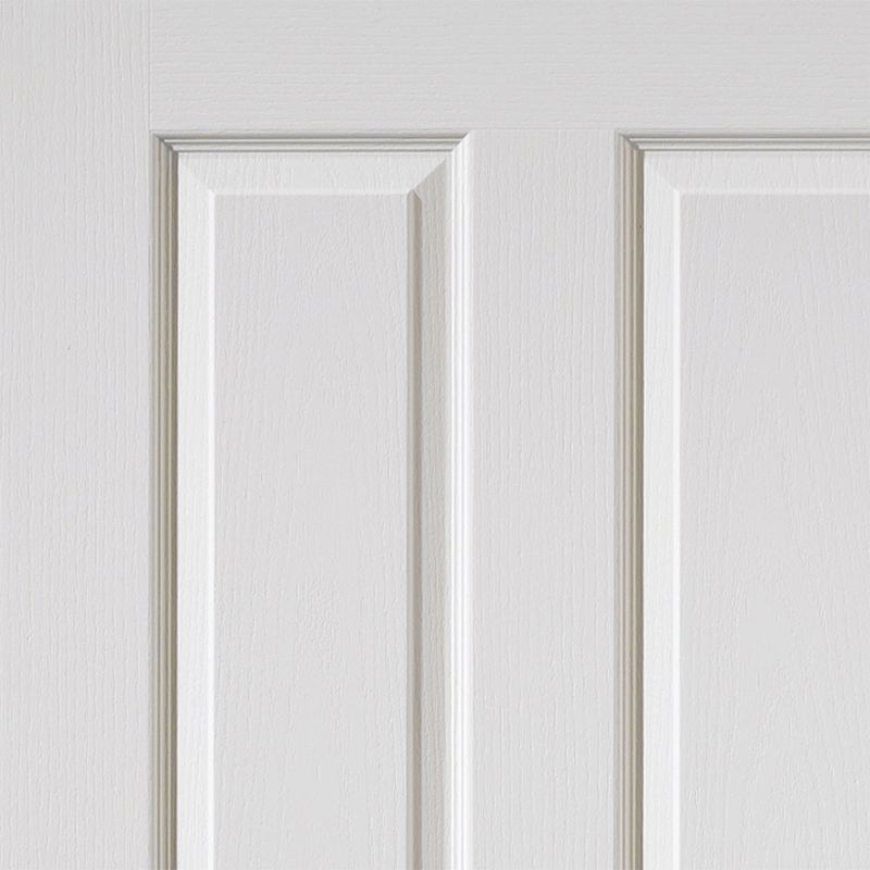 The JB Kind Canterbury 4 Panel Grained White Primed Internal FD30 Fire Door exudes timeless sophistication, showcasing a classic smooth-effect design that complements both traditional and modern homes alike. Pre-primed and ready for your desired paint finish, this interior door provides versatility and lasting charm. Built with a standard core construction, the Canterbury door ensures reliability and suitability for a range of design styles.