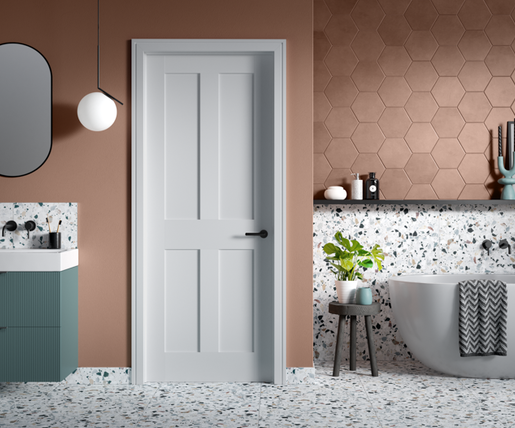 - Style: Traditional four panelled design with sleek and sophisticated white primed finish