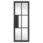The JB Kind Civic glazed Black Industrial Style door presents a contemporary 6-light design ideal for industrial-style interiors. These clear glazed doors in the Civic series are becoming essential for interior designers as homeowners embrace a more modern and cohesive aesthetic. Featuring a black painted finish and solid construction lock blocks, the Civic Black 6 Light Clear Glazed door is compatible with standard handles, latches, and hinges. Additionally, a 10mm trimming allowance on the bottom rail allows for easy customization during installation.