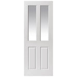 The JB Kind Canterbury Smooth 2 Light Clear White Primed Internal Door is a white moulded glazed door that comes primed and ready for painting. It boasts a smooth surface and clear flat safety glass. With a hollow core, this door provides a highly economical choice. Moreover, it is FSC® chain of custody certified, guaranteeing its sustainability.
