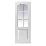 The JB Kind Classique White Primed Internal Glazed Door comes in various sizes. Featuring clear flat safety glass with flush beading, the door's bottom panel has a textured grain appearance. It is constructed with a standard core and is FSC chain of custody certified. With a thickness of 35mm, this interior door is a timeless white moulded panel glazed door that comes primed and prepared for a paint finish.