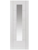 - Style: Contemporary white 5 ladder style panels, grooved into MDF with Clear flat safety glass, flush beaded