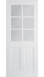 The LPD Canterbury Glazed 6L White Primed Internal Door comes pre-primed in white, providing the option to customise its colour to match your décor. This classic Canterbury door design features six square clear glazed panels above two raised shaped panels in a white finish.