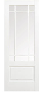 The LPD LPD Manhattan Glazed White Primed Internal Door will flood your living space with light. The practical Manhattan door design features clear bevelled glazed panels with decorative bars and is finished in a white shade. These doors come with sturdy 20mm lippings on both sides, allowing for easy customisation to fit your specific opening requirements.