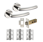- Privacy pack: a pair of lever handles, 3 x ball bearing hinges, a privacy latch, a bathroom turn and release and strike plate
