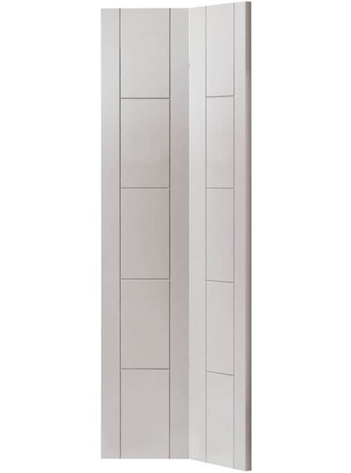 - Style: Contemporary White Painted Bi-folding Internal Door with 5 ladder style panels, grooved into MDF